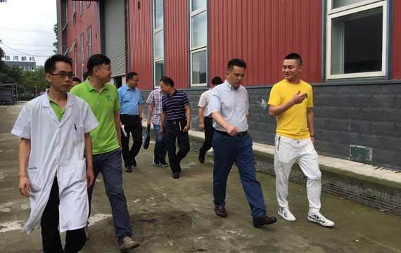 2019年7月18日,中共都江堰市市委副书记张明等领导一行莅临九州在线调研指导,【官网】药业总经理周金龙以及各部门负责人陪同接待。